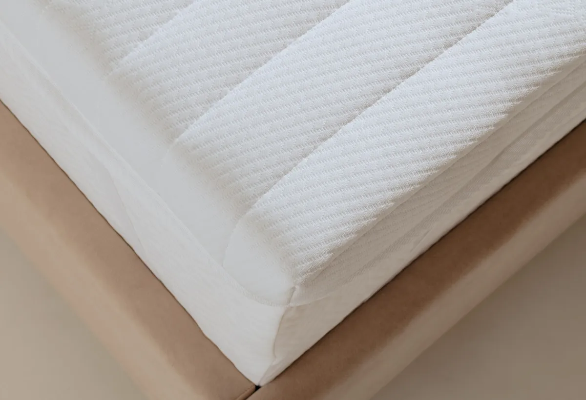 Топпер «Мелисса»: упругость и релаксЭтот топпер создан, чтобы помочь вам по-настоящему расслабиться. Он не жёсткий, а упругий и отзывчивый — тело на нём не проваливается, а мягко поддерживается. Всё дело в двух слоях пены. Нижний, 2 см, — это плотная основа для поддержки. Верхний, 3 см, — пена с рельефной поверхностью. Она создаёт лёгкий массажный эффект, который помогает снять напряжение после долгого дня. Это не интенсивный массаж, а скорее приятное покалывание для расслабления. Вместе они создают комфортную среднюю жёсткость. А стёганый чехол сверху делает поверхность приятной на ощупь.